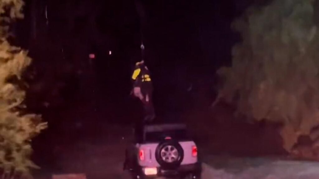 See moment driver is rescued from rising flood waters in California